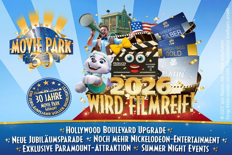 De voorbereidingen voor de 30e verjaardag van Movie Park Germany zijn al in volle gang. Om deze bijzondere mijlpaal in het seizoen 2026 feestelijk te vieren, heeft Duitslands grootste film- en pretpark een aantal acties, leuke hoogtepunten en een nieuwe filmische attractie voor zijn gasten gepland. Nu wordt het eerste nieuws uit Hollywood in Germany bekendgemaakt.